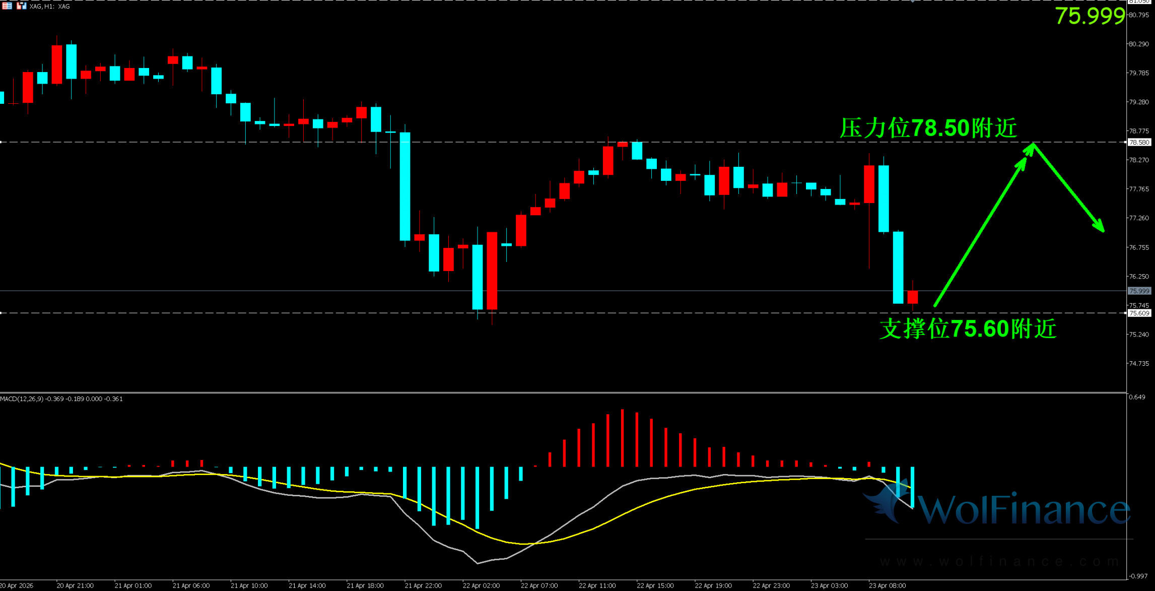 压力位:78.50 附近(前期震荡区间上沿 + 关键阻力带)