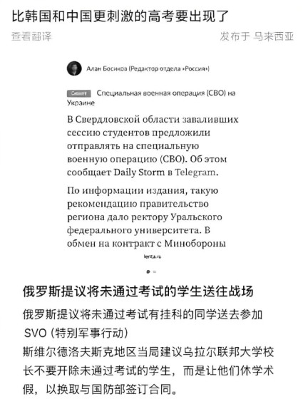 Although the incident of "failing exams and being sent to the battlefield" in Russian universities has not been finally confirmed, it reflects the special pressures on the education systems of some countries. According to Russian media reports, it is not only Ural Federal University, but also all universities in the Sverdlovsk Oblast that have received similar letters from the regional Ministry of Education.