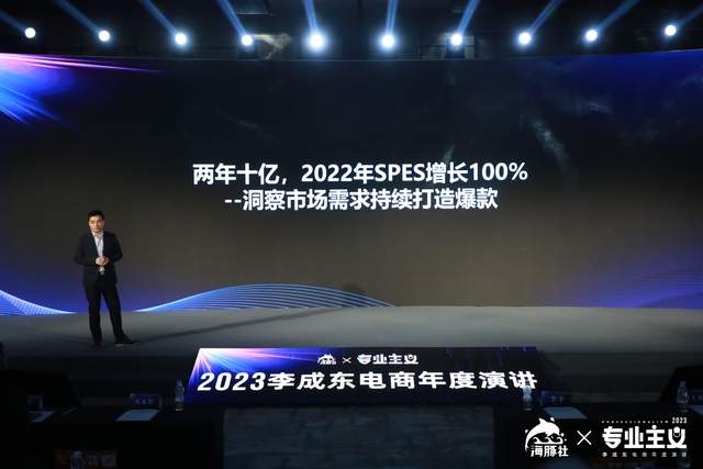 刚才讲参半,说在大赛道,新品牌跟大品牌竞争没有优势,做不起来,现在到spes怎么就能做起来?其实spes能够做起来是一个意外,甚至可以说是“被动”成长起来的,创始人跟我说:“我们也不知道做什么,当时做京东起不来,能够做的只有抖音。再加上精准的投放,不断用抖音场景测试爆款,很快就起来了。”