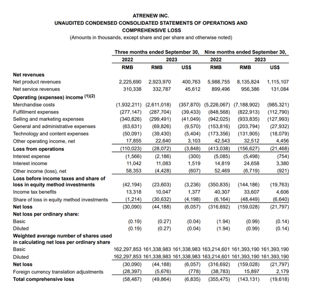 截至2023年9月30日,万物新生现金及现金等价物、限制性现金、短期投资和来自第三方支付服务商的应收账款共计23.1亿元,去年同期为28.0亿元。