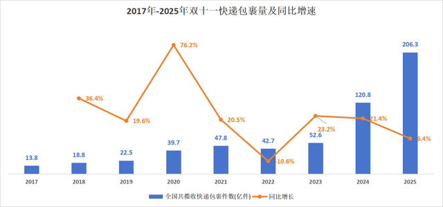 因为大家发现,这样的操作无法继续维持。从比较直观的包裹量也可以看到大促最真实的样子。今年双11期间,快递量同比仅增6.4%,非常惨淡。