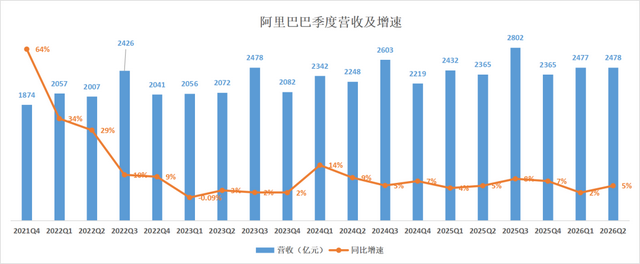2026财年Q2总收入为2478.0亿元,同比增长5.0%。若不考虑高鑫零售和银泰的已处置业务的收入,同口径收入同比增长将为15.0%。