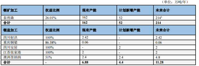 泰利森还正加紧推进设计产能52万吨的化学级三号加工厂2025年投产,还计划在2025年建设设计产能52万吨的化学级四号加工厂2027年投产。