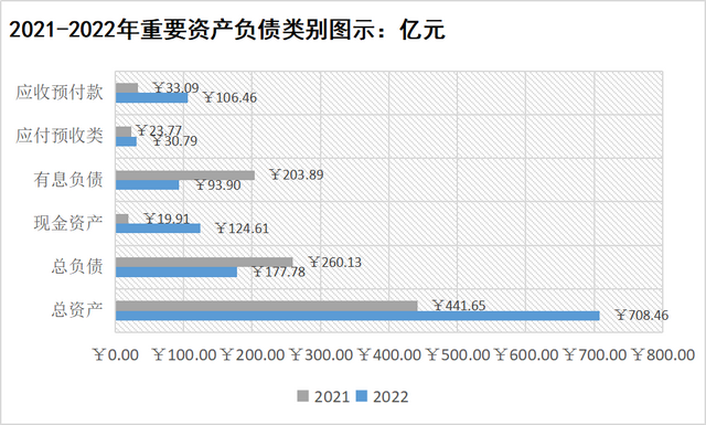 公司2022年应付预收类共106.46亿元,对应30.79亿元的应付预收类,即仍有75.67亿元资金在产业链中做铺垫。