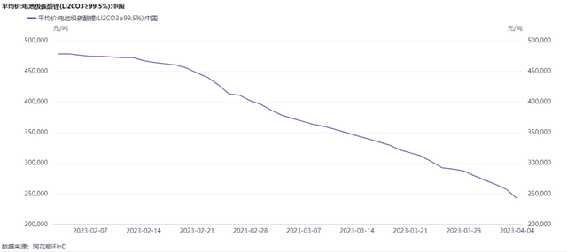 2023年开年至今,电池级碳酸锂平均价格已经跌到25万元以下,相比公司2022年43.04万元售价折价41.92%,这对2023年收入和利润构成重大影响。
