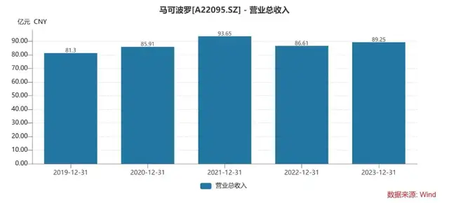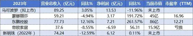2023年年报马可波罗实现营业收入89.25亿元,实现净利润13.53亿元,同比3.05%、-11.96%。
