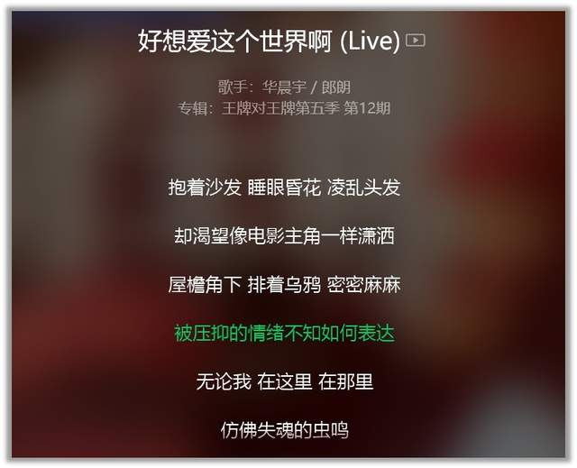 “抱着沙发、睡眼昏花、凌乱头发”“想过离开,以这种方式存在”……华晨宇在《好想爱这个世界啊》中唱出了抑郁症群体的心声(见下图1),不少抑郁症患者从中找到共鸣,更从中获取了努力生活的温暖和希望。这首歌一经发出便迅速在网络中流行开来,引发了大众对抑郁症群体的关注,直至现在都是畅销单曲。