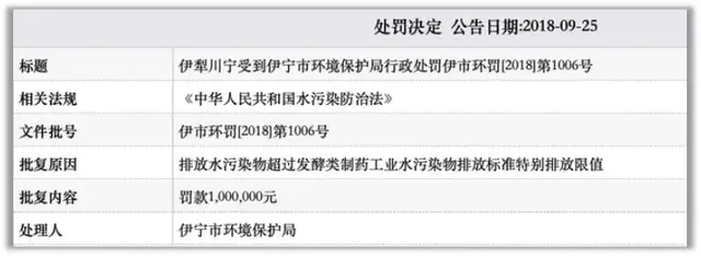 抗生素全产业链的“环保秘密”。科伦伊犁川宁项目是全球最大抗生素中间体生产基地,甚至因污水处理技术先进被环保部门列为“行业标杆”。但在川宁生物《招股书》显示,2019年-2021年川宁生物的环保投入分别为4.53亿元、2.74亿元和2.19亿元。尽管投入了巨额资金用于环保,但川宁生物还是多次收到因环保事项遭到处罚。