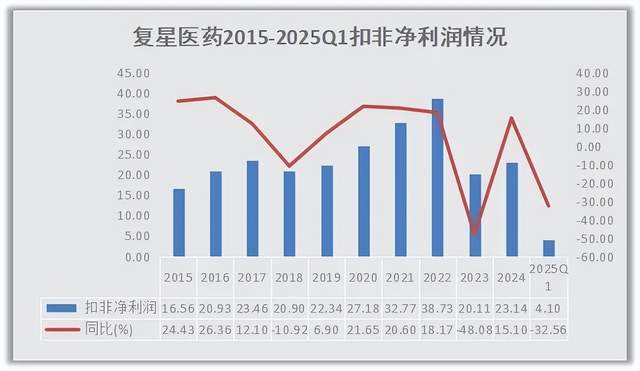 2022年,复星医药以接近40亿元的年度净利润创下历史纪录,但随之而来的便是断崖式的下跌。