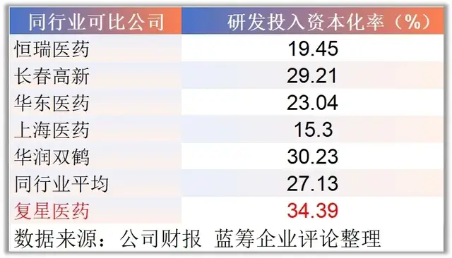 这一比例在行业中处于高位。Wind数据显示,公司主要同业竞争者2024年平均资本化率为27.13%。具体来看:恒瑞医药为19.45%,长春高新为29.21%,华东医药为23.04%,上海医药为15.30%,华润双鹤为30.23%。该公司的资本化率较行业均值高出超过7个百分点。