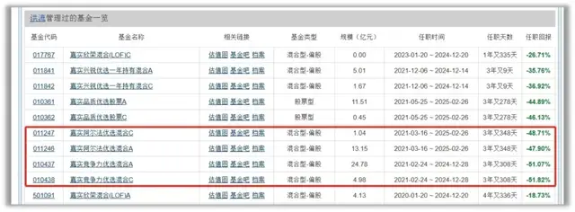 比如洪流管理的嘉实阿尔法优选混合、嘉实竞争力优选混合等产品净值普遍遭到腰斩。