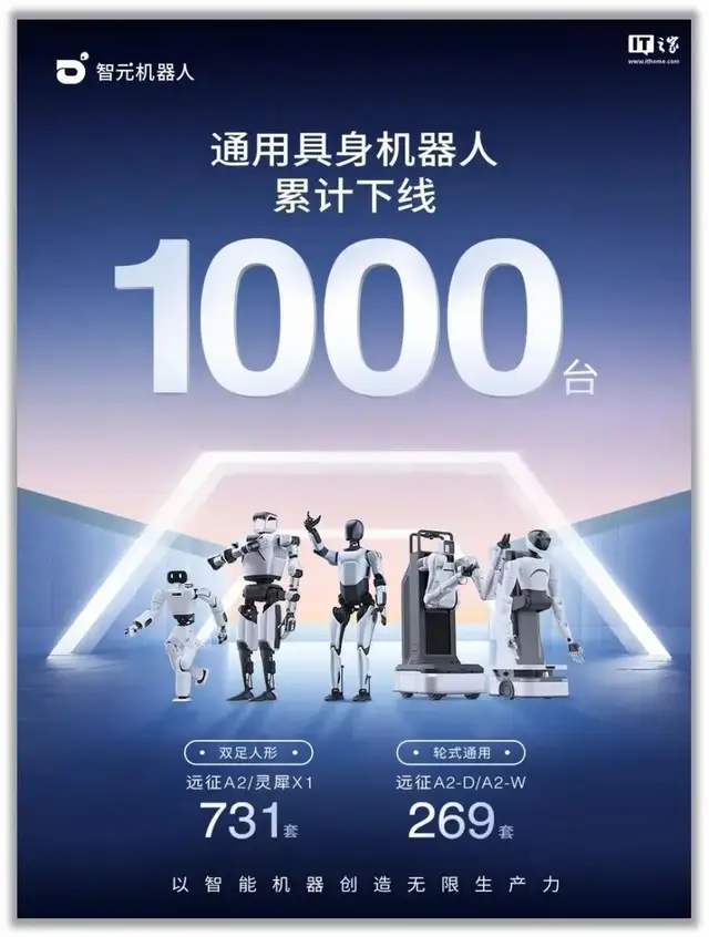 更重要的是,智元机器人目前仍处于早期发展阶段。据公开信息,智元机器人量产的第1000台通用具身机器人于2025年1月下线,其中包括 731 台双足人形机器人(远征 A2 / 灵犀 X1)和 269 台轮式通用机器人(远征 A2-D / A2-W)。
