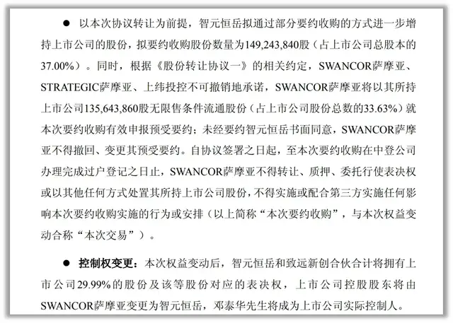 股权交易完成后,上纬新材控股股东将变更为智元恒岳,智元恒岳的实际控制人邓泰华将成为上市公司实际控制人。