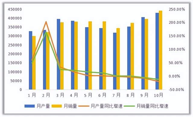 10月份,比亚迪依旧没有改观,单月销量为44.17万辆,同比下跌12.13%。