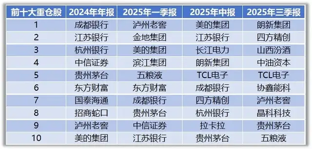 研究基金持仓发现,王明旭的投资风格偏重低估值及蓝筹大盘股,强调“均衡配置”和“稳健增长”。从持仓结构来看,以广发价值优势为例,2024年年报显示,前十大重仓股以证券、银行、房地产、白酒板块为主。今年一季度,王明旭减持了证券和银行,二季度增持了TCL电子、美的集团等家电板块。