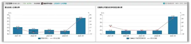 三季报显示,2025年1-9月,方正证券实现营业收入90.82亿元,同比增长67.17%。