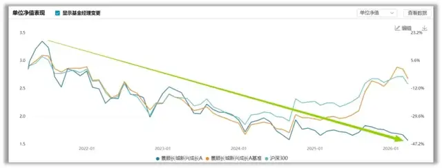 但随着2021年消费板块见顶回落,这把曾经锋利的“镰刀”变成了钝器。截至2026年3月,该基金净值仅剩1.5670元,较巅峰期几乎腰斩。