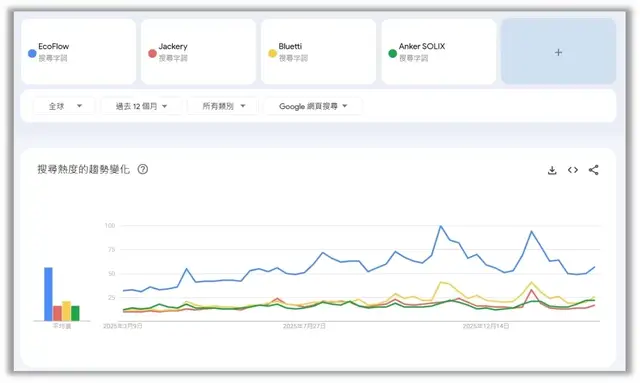 德兰明海的“BLUETTI”品牌也在海外获得了广泛认可,根据弗若斯特沙利文的数据显示,在2023年、2024年和2025年,“BLUETTI”在谷歌趋势便携式储能产品类别的平均搜索热度均位列全球前两名。在近一年内,在行业四大企业中,德兰明海的“BLUETTI”在行业搜索中仍排名第二,拥有如此的品牌力,无疑能使德兰明海在市场中获得了极大的关注度。