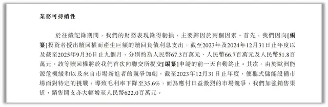 根据德兰明海的说法,业绩的亏损主要是两方面的原因。一是向部分股东授出可赎回普通股权利,为此累计支付巨额赎回负债利息,2023年-2025年9月分别为6730万元、6670万元、5180万元;二是由于毛利率下滑而大幅提高了销售开支,2023年年末销售开支达到6.22亿元。