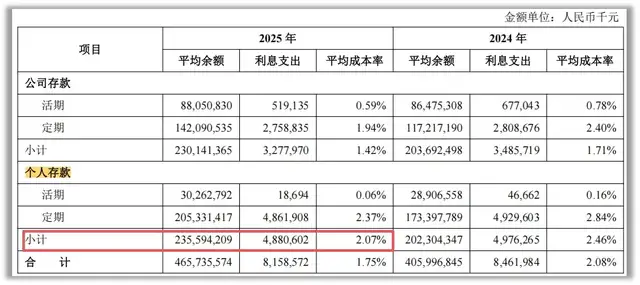 零售存款虽然增长14.76%,但存款成本率仍高达2.07%,远高于公司存款1.42%的水平。零售业务的“资产萎缩、负债高成本”,正在侵蚀该行的盈利能力。