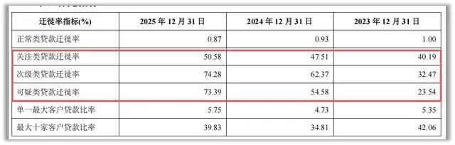 不仅如此,细究贷款迁徙率数据,可以看到公司资产还存在不小的风险。