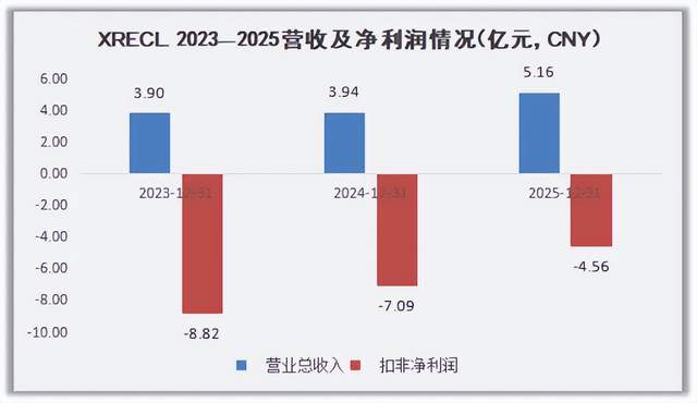 财务数据显示,2023年至2025年,XREAL的营收分别达3.90亿元、3.94亿元和5.16亿元,扣非净利润分别为-8.82亿元、-7.09亿元、-4.56亿元。三年累计亏损高达20.47亿元,远超同期总营收13.01亿元。