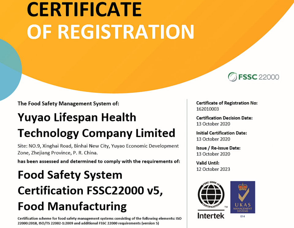 近日,国内“长寿辅酶”工厂莱孚斯本宣布再拿下一国际权威认证——食品安全体系认证FSSC 22000,为提升中国制造的强大实力“添砖加瓦”。