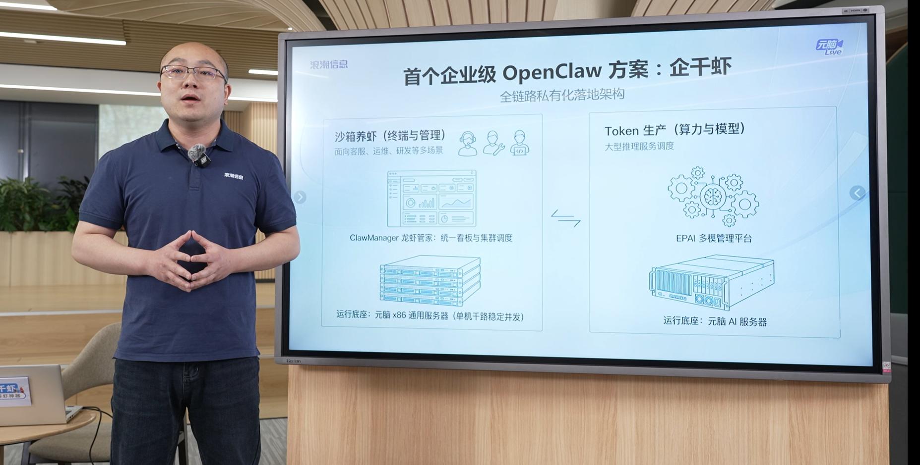 目前,浪潮信息“企千虾”方案的做法就是将CPU集群用于Agent调度、GPU集群用于模型推理,各司其职。具体来说,元脑x86服务器承担OpenClaw的批量部署与管理,元脑AI服务器专职负责模型推理。