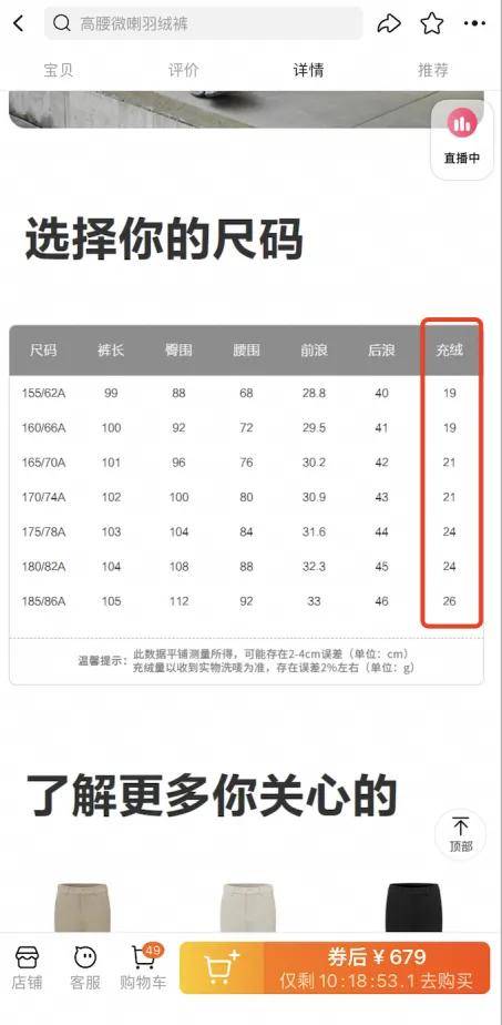 翻看目前波司登网店里上架的羽绒裤,大多充绒量都在20克以上,即使是售价300多元的羽绒裤,最小码的充绒量也超过20克。尽管波司登客服坚持声称“绒跟绒之间不一样”,但在舆论压力下,波司登没有坚持继续售卖“3克羽绒裤”。