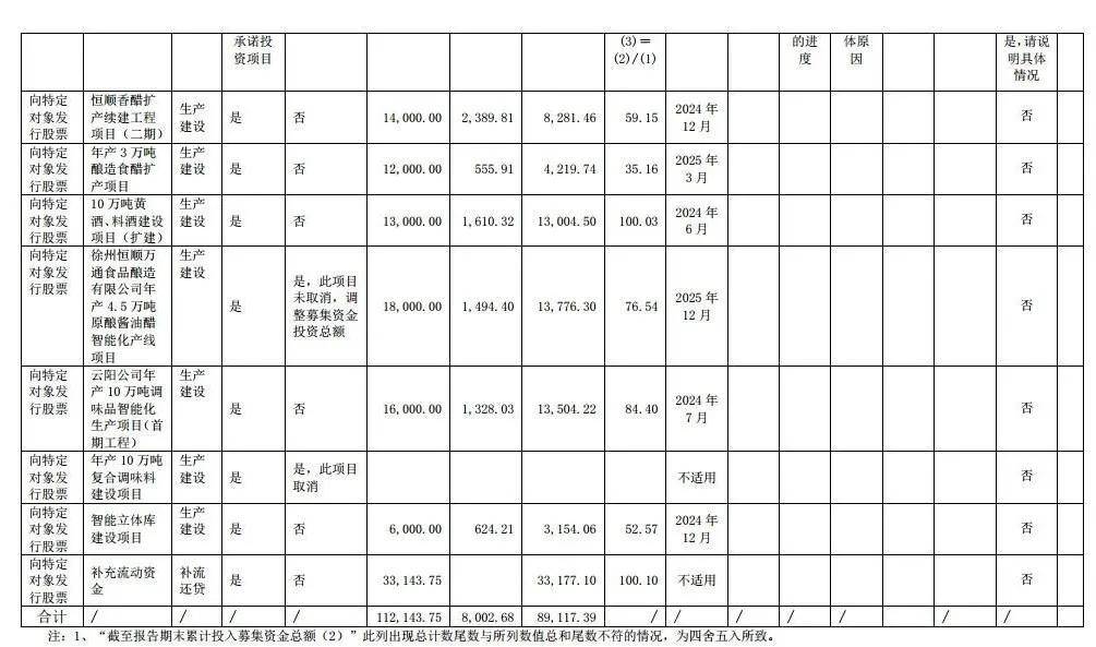 综合来看,恒顺醋业7大募资项目中,有4个项目出现延期。