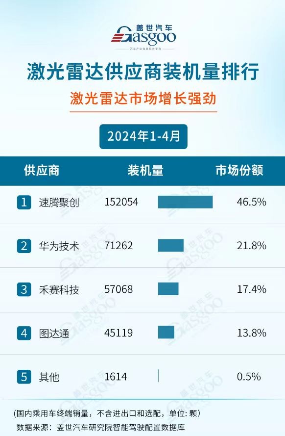 巨大的市场空间引来众多参与者,但能像速腾聚创一样实现定点+交付都强势领先的并不多。
