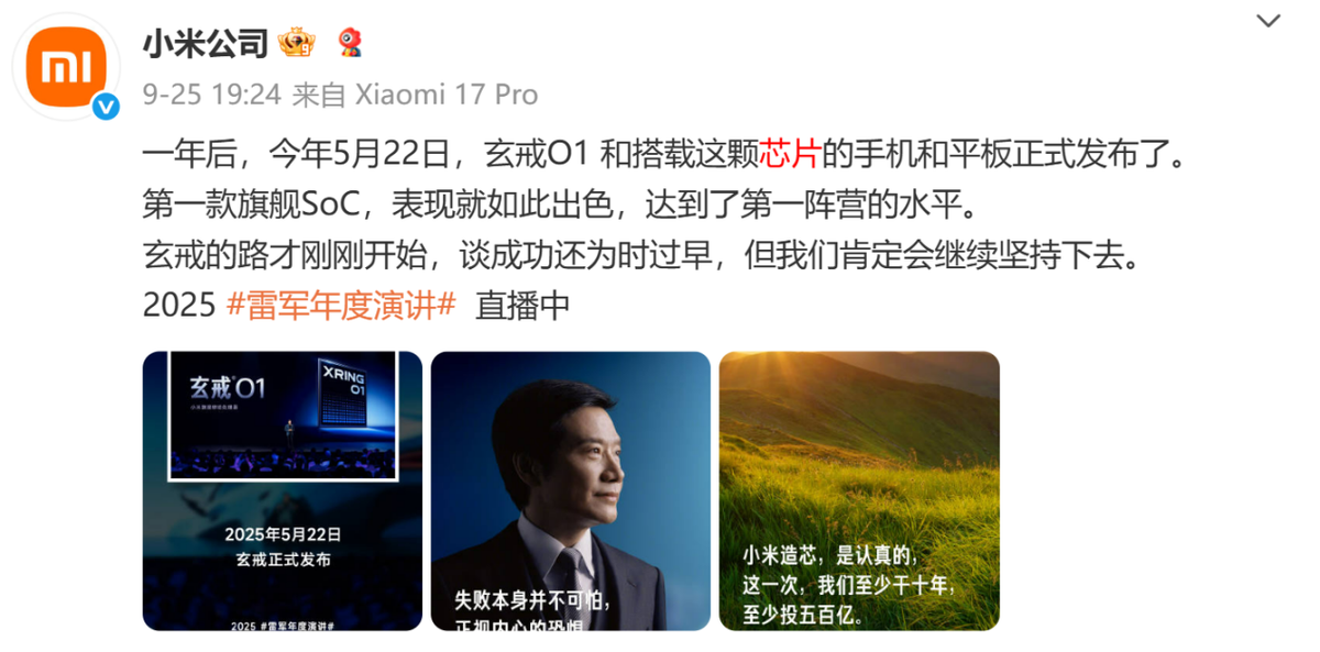最近,雷军在2025年度演讲上再次爆出新动作。预计投入至少500亿元,开启为期十年的自研手机SoC(系统级芯片)征程。与此同时,小米首发的自研旗舰芯片“玄戒O1”等产品迅速成为科技圈热议的焦点。