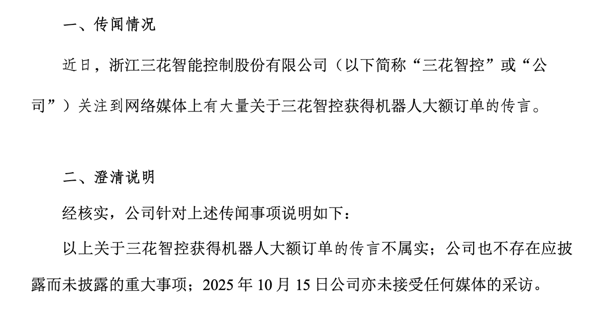 尽管订单传闻被澄清,但三花智控在机器人执行器领域的技术积累确实打开了长期想象空间。
