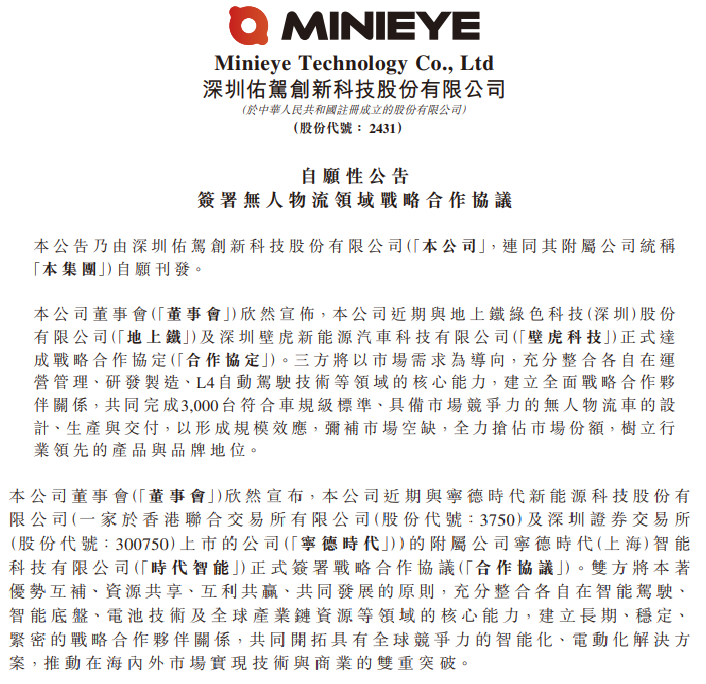 然而,这家智驾公司在一个月内接连官宣了多起合作,先是联手运营平台地上铁、滑板底盘公司壁虎科技,要在无人物流领域落地3000台量产车;紧接着又牵手宁德时代子公司时代智能,围绕智能底盘和智驾方案进行深度绑定。