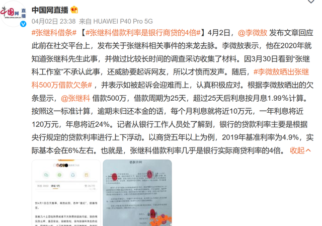 4月2日晚,李微敖晒出的这份《借款合同》,堪称重磅。