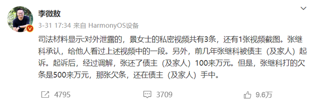 先是知名调查记者李微敖爆料张继科“借钱欠债及传播女演员隐私视频”,张继科方两次发声否认,4月2日更向媒体透露准备起诉。