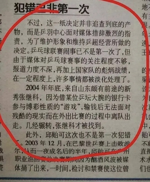 值得一提的是,张继科早就有过涉及赌博的相关争议。据报道,早在2004年,张继科便因为借某位乒坛大腕的银行卡,参与博彩性质的“游戏”,输钱后无法面对残酷的现实而在外出比赛的过程中离队出走。