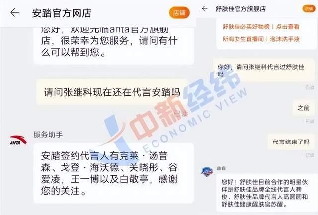 安踏官方网店客服提供的信息显示,目前安踏代言人包括关晓彤、谷爱凌等,名单中并未出现张继科。