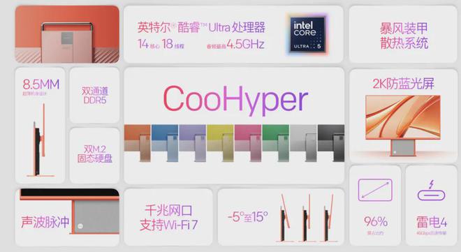 酷开CooHyper幻影系列一体机新品,与行业标杆iMac 2024版新款对比,也是亮点突出。