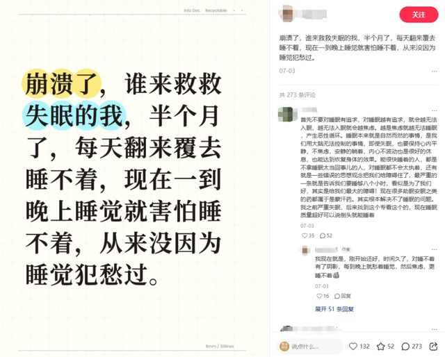 这不是孤例。深夜,在社交媒体的角落里,失眠者们分享着相似的疲惫。