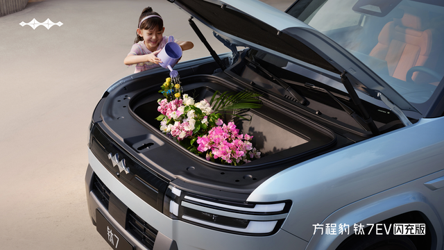 更值得一提的是,钛7EV闪充版在空间上再度升级,大上加大,魔术前舱、全景座舱、灵动后舱三重魔法大空间远超同级:新增同级最大的201L电动开合前备箱、84L的下沉储物盒、总容积1030L的后备箱(二排座椅放倒后,整体拓展容积更是达到1940L)、32.5L的专属小书包、48处储物空间,从大件露营装备到随身小物件,都能完美集装。