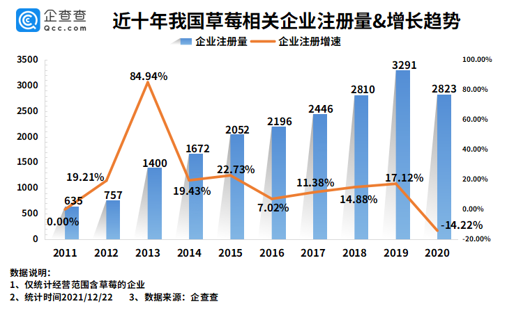 今年前11月我国新增草莓相关企业911家