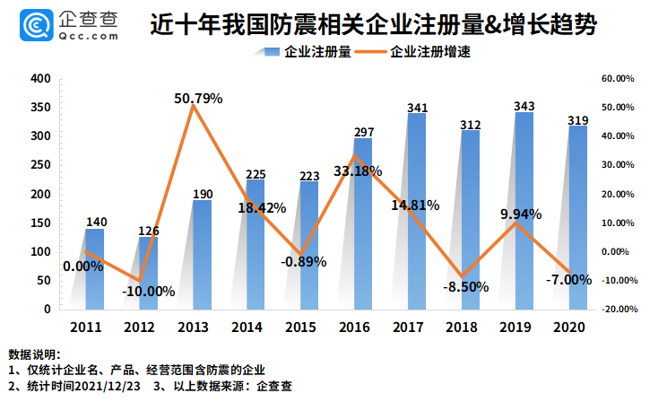 今年前11月我国新增防震相关企业165家