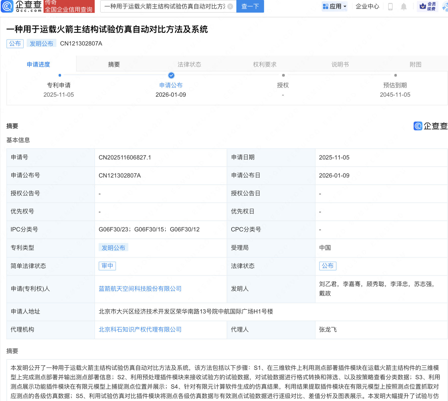 蓝箭航天新专利可提升运载火箭试验仿真对比分析效率