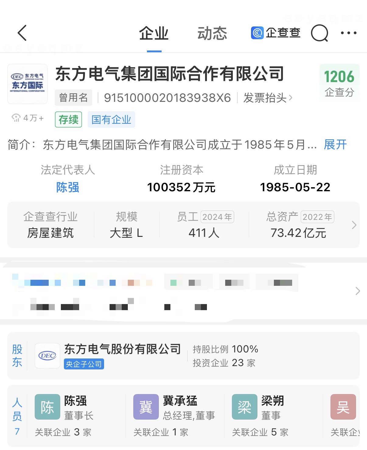 企查查显示,东方电气集团国际合作有限公司立于1985年5月,董事长、法定代表人为陈强,主营业务涉及风电、太阳能、水电、核电、气电等能源装备制造领域,由东方电气(600875)全资持股。