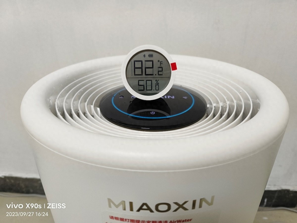 想要更简单地了解加湿效果,可以使用附带的分体温湿度测试仪,这是秒新加湿器的一个“传承”,也是空气类高端产品常见的设计。使用也十分简单,打开加湿器,将测试仪置于0.5米 以内距离,就可以实现蓝牙自动连接。
