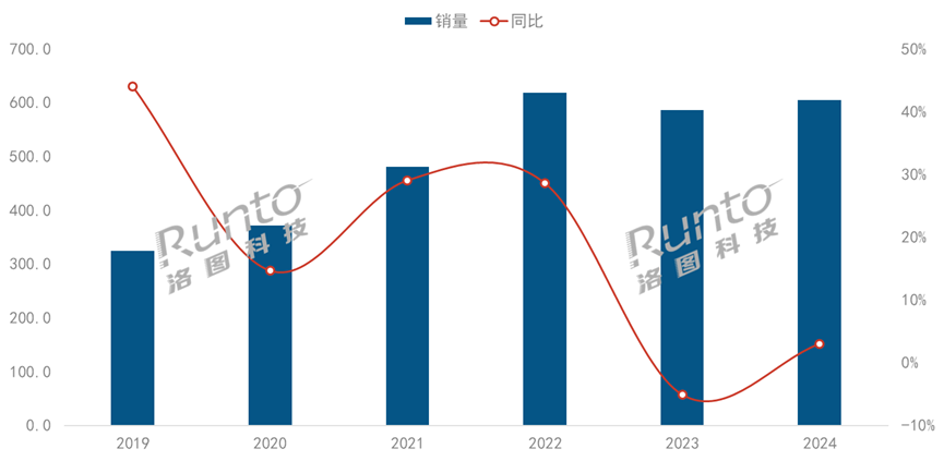 根据洛图科技的《中国智能投影零售市场月度追踪》报告,2024年,中国智能投影市场(不含激光电视)销量为604.2万台,同比上涨3.0%,继市场规模在2023年发生近年来首次衰退之后,在2024年再一次站到600万台以上。