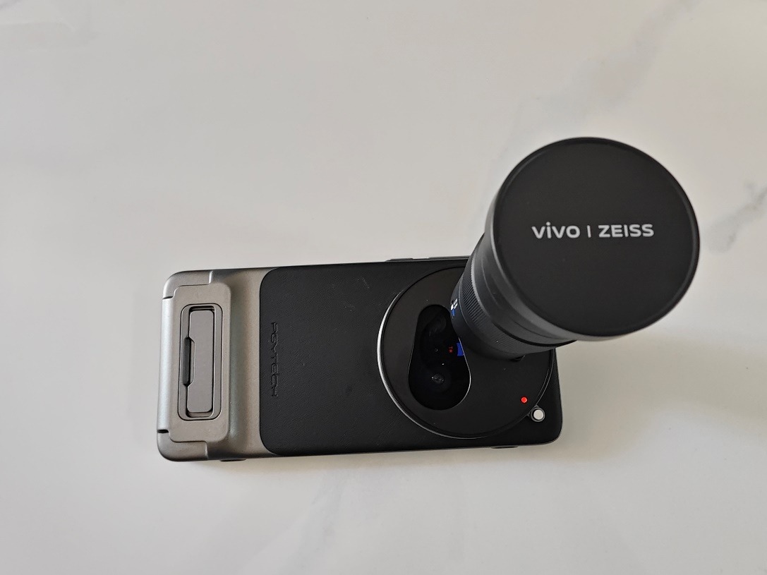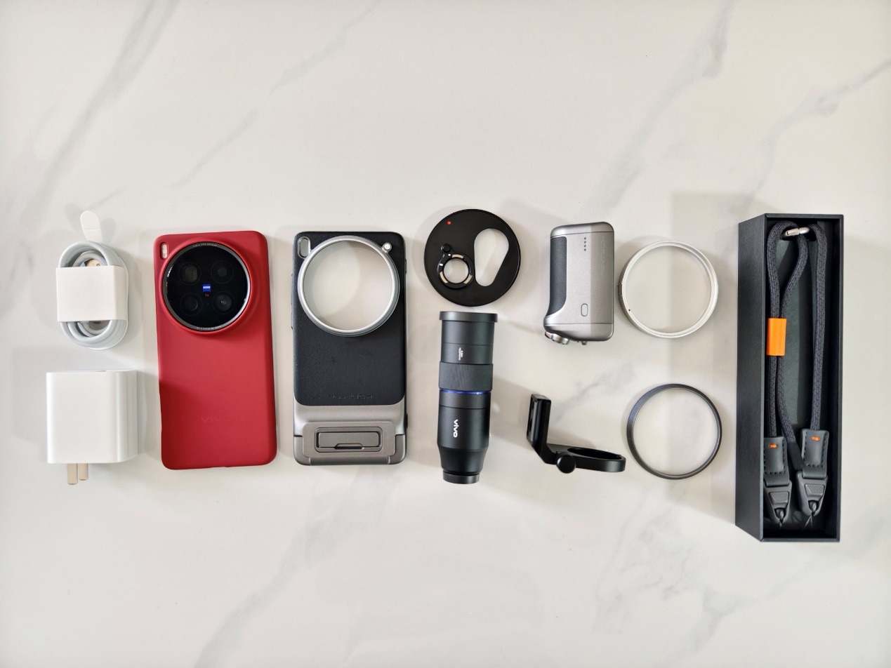 从打开包装的那一刻起,这套设备就与传统手机划清了界限。手机本体延续了vivo一贯的精致质感,素皮背板与金属中框的搭配,让人联想到复古相机的美学语言。但真正的灵魂藏在配件中:专业摄影手柄、蔡司长焦增距镜和磁吸滤镜系统,共同构成了一个完整的影像生态。