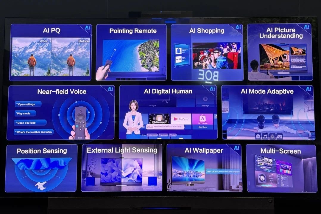 AI维度上,京东方以“AI+显示”重构人机交互边界。当显示遇上AI,屏幕不再是信息的容器,而是智慧的伙伴。全球首发的AI TV、AI笔记本电脑与显示器,集成了光感、温感等传感器件,搭载屏幕局部刷新、远端监测等智能技术。这背后,是京东方“AI+”战略的落地——从AI+制造到AI+产品再到AI+运营,AI已成为驱动创新的先进生产力。