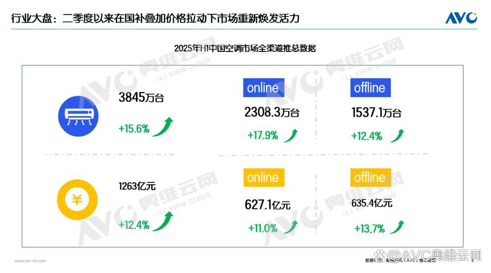 奥维云网推总数据显示,上半年空调市场处于量额双增的状态,其中销量为3845万台,同比增长15.6%;销额规模达1263亿元,同比增长12.4%,均实现双位数增长。其中二季度零售量同比增长23.1%,零售额同比增长19.6%。